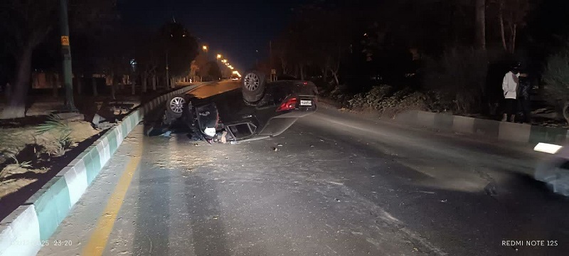 واژگونی خودروی دنا در بلوار آیت اله اراکی و مصدومیت سرنشین