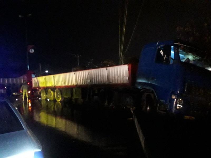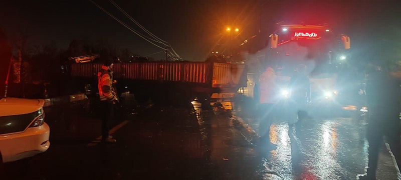 واژگونی خودرو تریلی و بسته شدن بزرگراه شهید جمهور