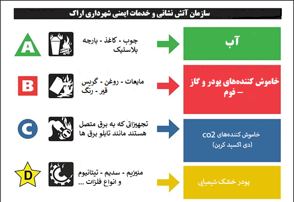 خاموش کننده ی مناسب این نوع از آتش، پودرهای خشک شیمیایی هستند.