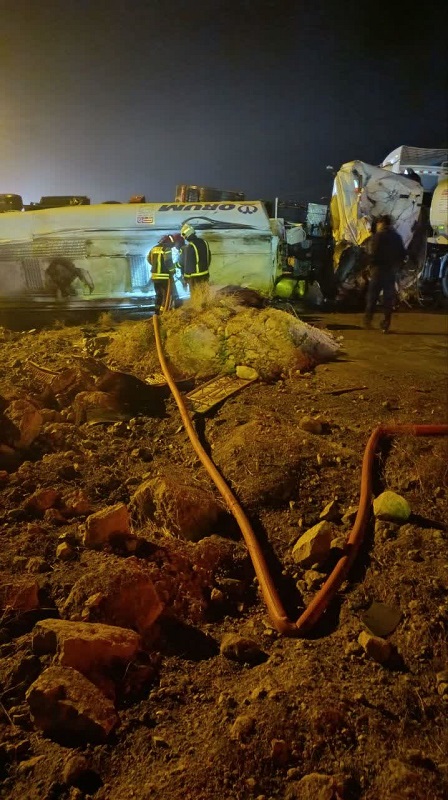🔸لازم به ذکر است: راننده تانکر در پی این سانحه دچار جراحت شد و پس از انجام اقدامات اولیه توسط کارشناسان اورژانس به مراکز درمانی انتقال داده شد.